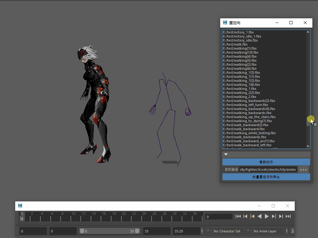 在maya软件中进行重定向可以很好重定向手指姿势和肢体动作。