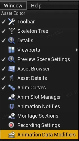 可以在Animation Sequence 资源或者骨骼资源编辑界面打开窗口 Animation Data Modifiers 选择需要执行的Modifier