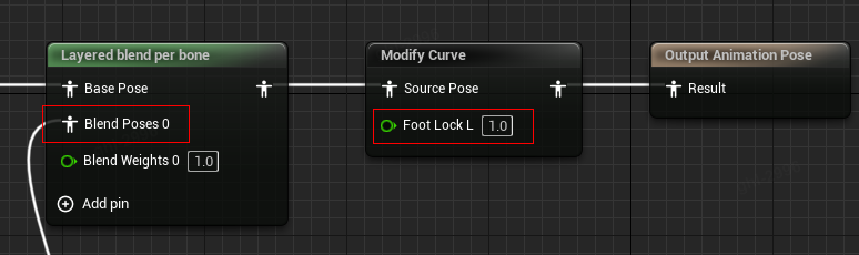 - 某个状态机节点内的Modify Curve:它所代表的状态,受到节点权重的影响。比如Modify Curve 【曲线名字:FootLock_L】为1.0,此时状态过渡权重为0.9,那么FootLock_L曲线的实际值是0.9.