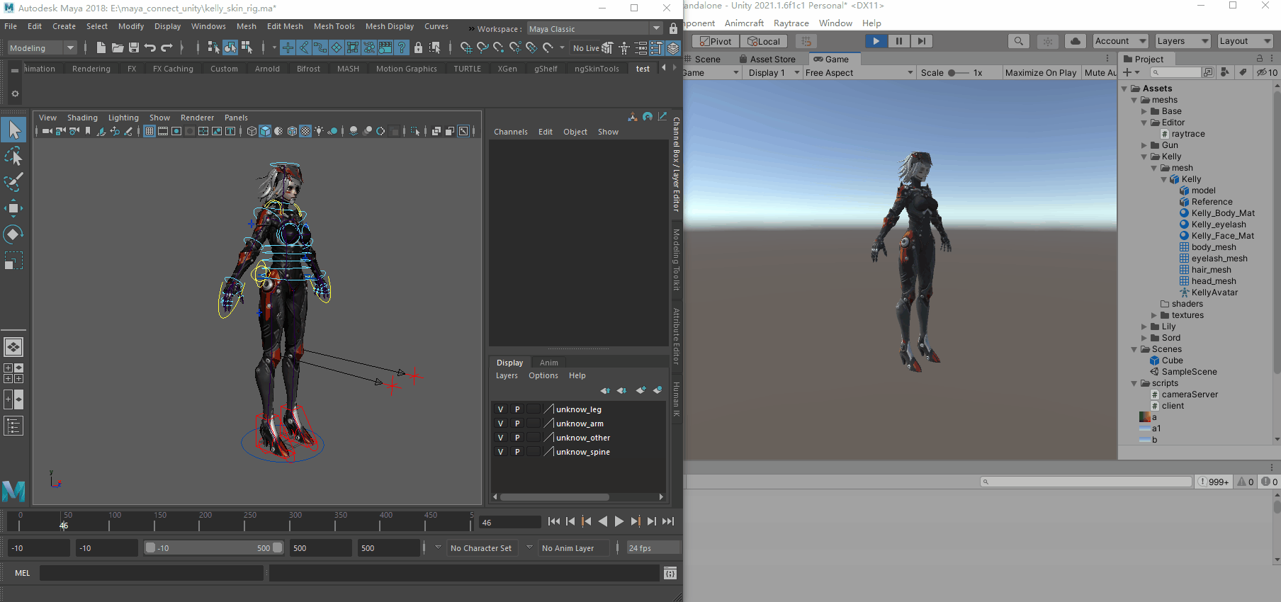 Maya角色动作和Unity角色实时动作同步、摄像机同步
